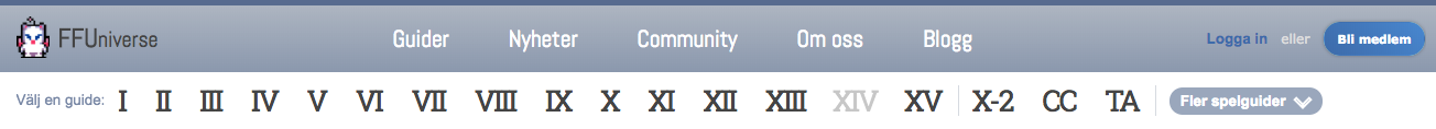 I tillägg har vi också aktiverat TopNav5 på dessa sidor. “TopNav” är den översta raden med navigering som ligger på alla våra sidor, där du kan fort ta dig mellan våra spelguider och andra sajer. Den har varit under utveckling länge men tog en paus för migreringen av FF8-sajten (som visade sig vara ett oerhört omfattande jobb). Vi börjar nu med en blygsam beta-test där vi testar hur den funkar medan vi jobbar på de sista detaljerna.