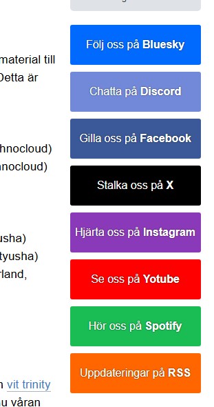 På alla guiders framsidor visar vi färgglada länkar till sociala media. Här har vi ändrat Twitter-boxen (de heter ju nu X), justerat Spotify-färgen, samt lagt in Bluesky på toppen (som är en ny konto vi skaffat).