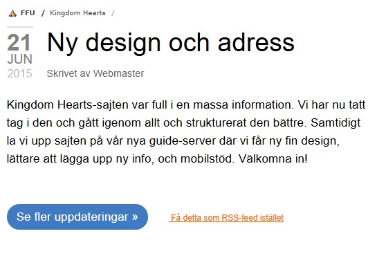 Man kan öppna uppdateringar på alla guiders framsida. De visades i en mindre spännande design, så jag tog in datum-designen från framsidorna. Jag la också till nyttiga länkar för att se alla nyheter eller komma till RSSen.